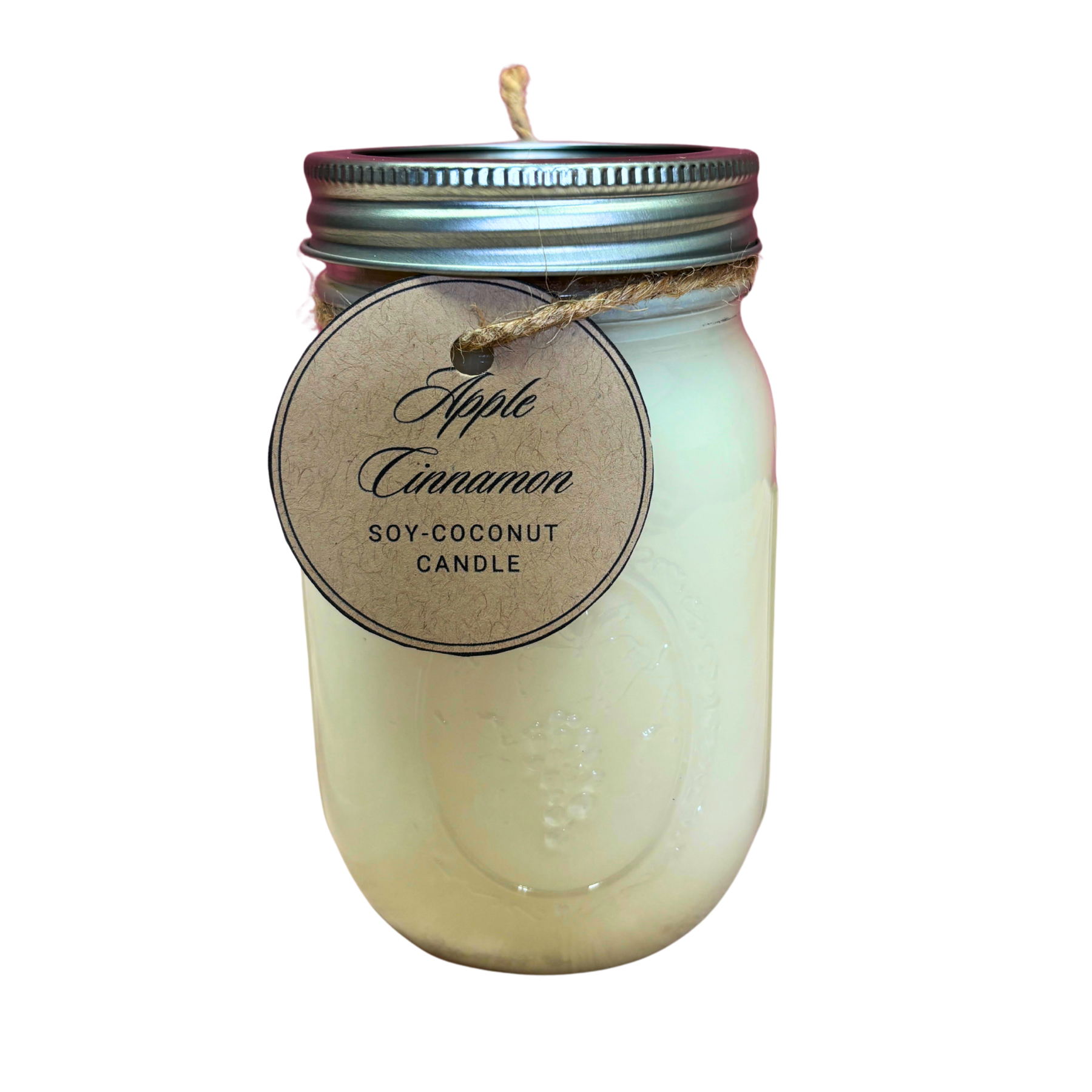 Apple Cinnamon Scented Candle, thoughtfully hand-poured in Delavan, WI. Crafted from a high-quality blend of soy and coconut wax, this candle burns cleanly and lasts long, filling your space with a calming ambiance.